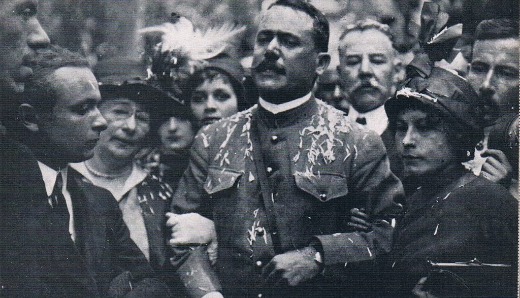 El general Alvaro Obregón visita la tumba del presidente mártir don Francisco Madero después de su entrada triunfal a la ciudad de México. Agosto de 1914